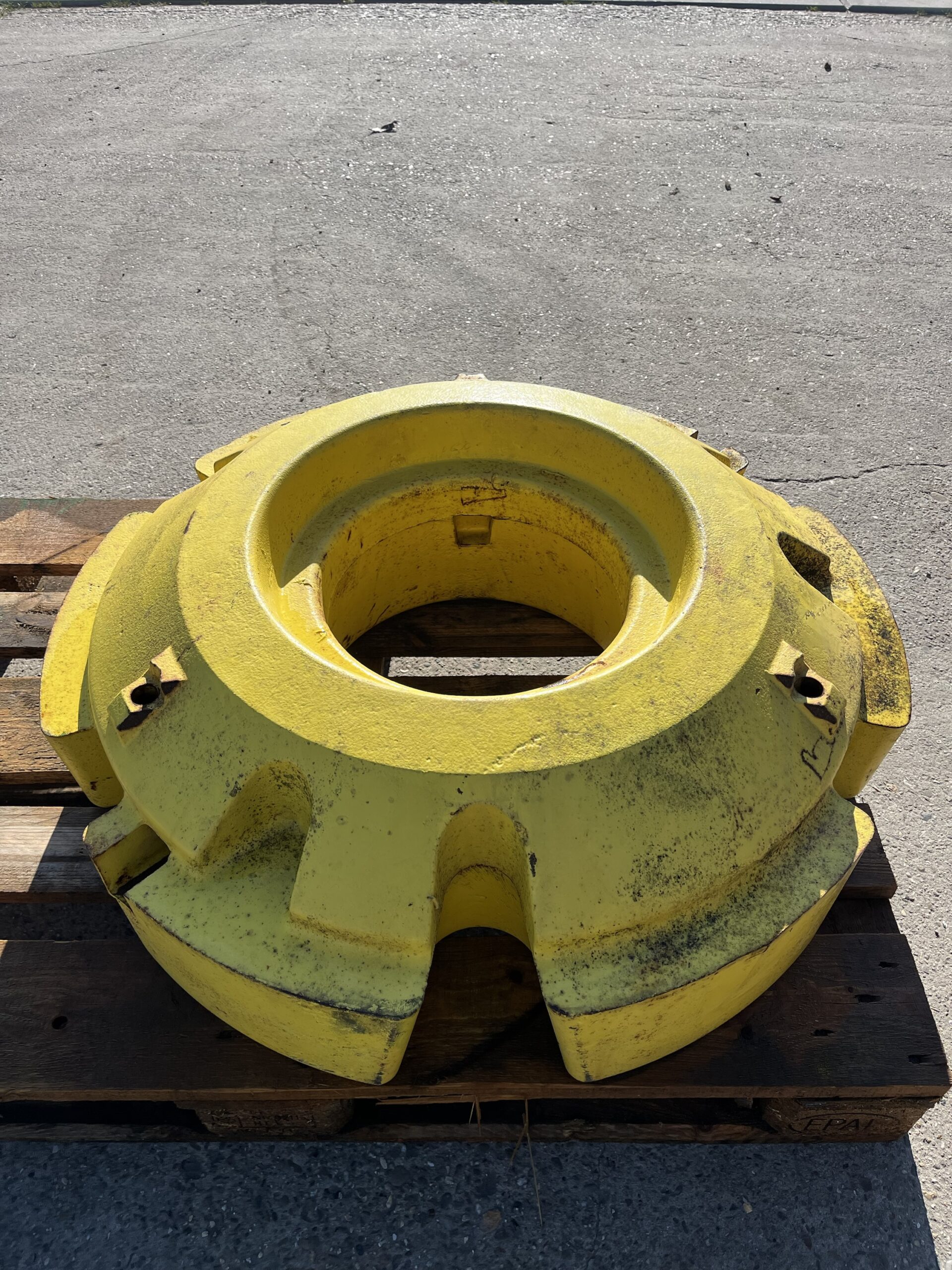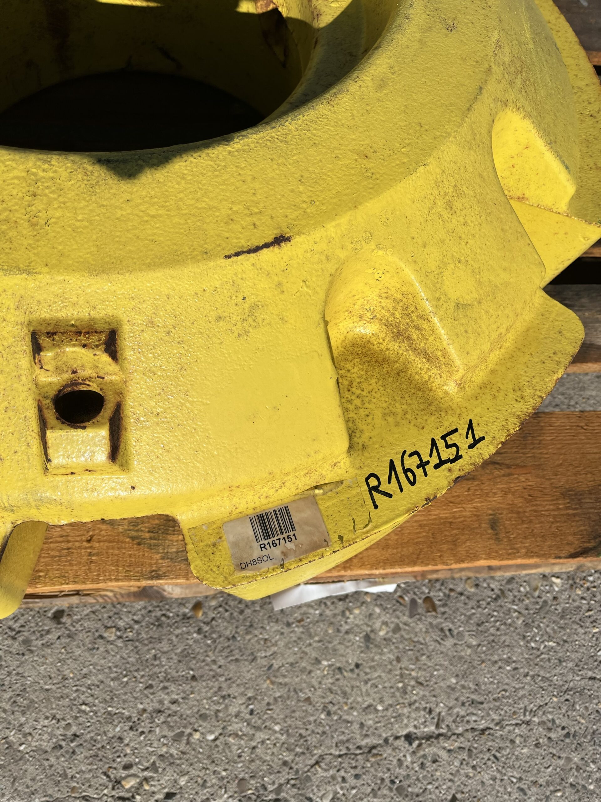 Origineel John Deere wielgewicht met onderdeelnummer R167151. Ideaal voor het toevoegen van extra ballast en het verbeteren van stabiliteit en trekkracht tijdens werkzaamheden.
